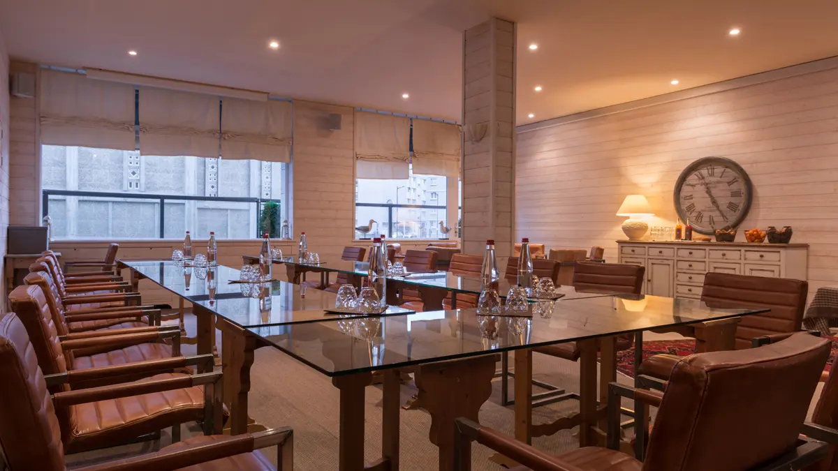 Warm and functional meeting rooms: we have two meeting rooms available, including one with a patio and a large private terrace. It's possible to have additional subcommittee rooms that can seat 6 to 8 people around a table.