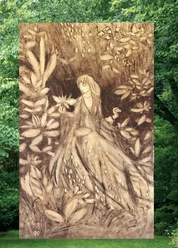 C’est ce que j’ai cherché à faire à travers ces oeuvres sur lin exposées autour de l’eau dans le jardin de Terre d’accord.