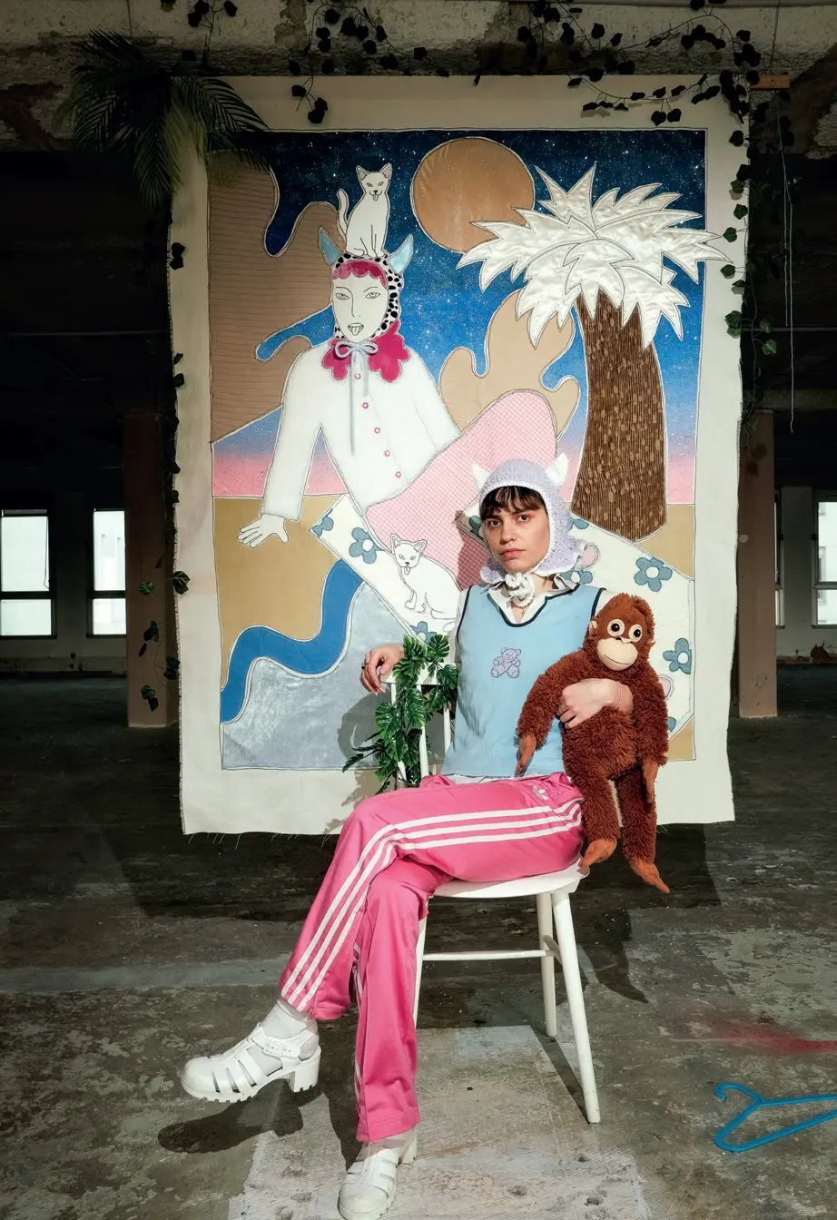 J’assemble des tissus de seconde main, vêtements portés, draps anciens, chutes oubliées, pour leur offrir une nouvelle vie et raconter d’autres récits. À travers l’upcycling, Je cherche à réparer symboliquement, à recoudre les blessures invisibles du passé. Mon univers, à la fois pop et sensible, mêle intimité, émotions et réminiscences d’enfance.