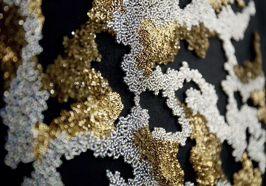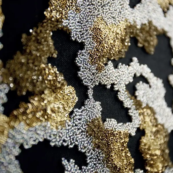 Chaque point brodé à la main est réfléchi et répété des milliers de fois pour exprimer une émotion qui s’inscrit dans une temporalité singulière. Ma broderie est une longue méditation que j’aime partager pour exprimer le beau, le sensible et le fragile.