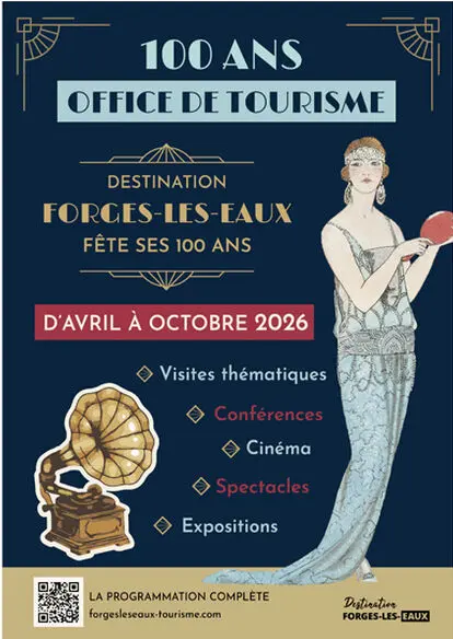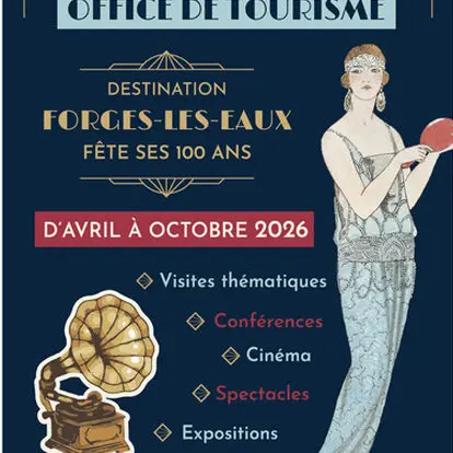 Inauguration des expositions dans le Parc de l’Hôtel de Ville à 11h avec la présence de l'orchestre de l'harmonie Lieu des expositions : Parc de l’Hôtel de Ville (La vie dans les années 20) – Office de Tourisme ( L'évolution du tourisme depuis 1926 ) – Grilles du Parc du Casino (Le thermalisme à travers les anciennes cartes postales) Gratuit ouvert au public Cette manifestation s'inscrit dans le cadre des 100 ans de l'Office de Tourisme de Forges-les-Eaux. Un anniversaire qui célèbre un siècle d'accueil, de promotion et de passion pour le territoire.