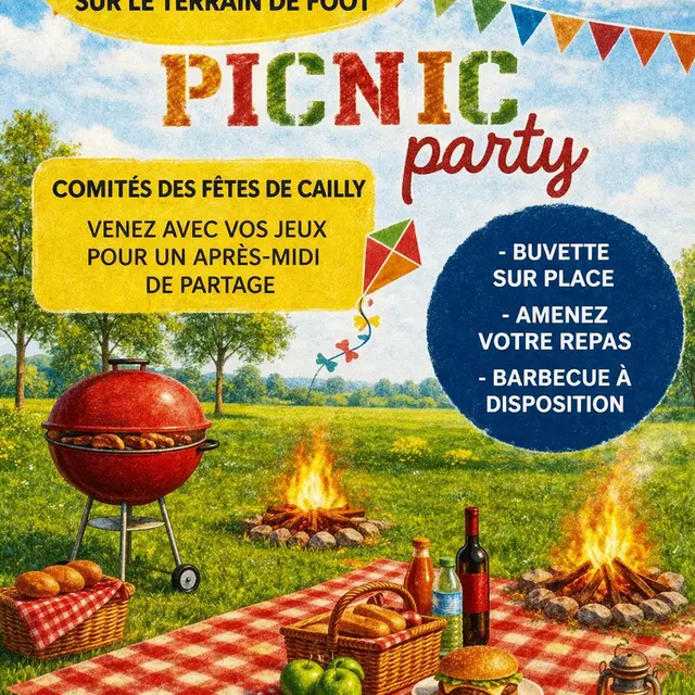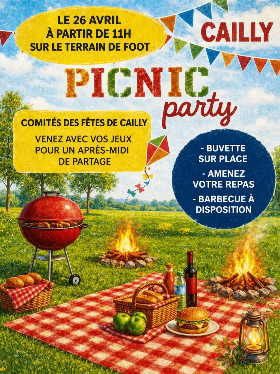 Le comité des fêtes de Cailly organise un picnic party le dimanche 26 avril à partir de 11h sur le terrain de foot.