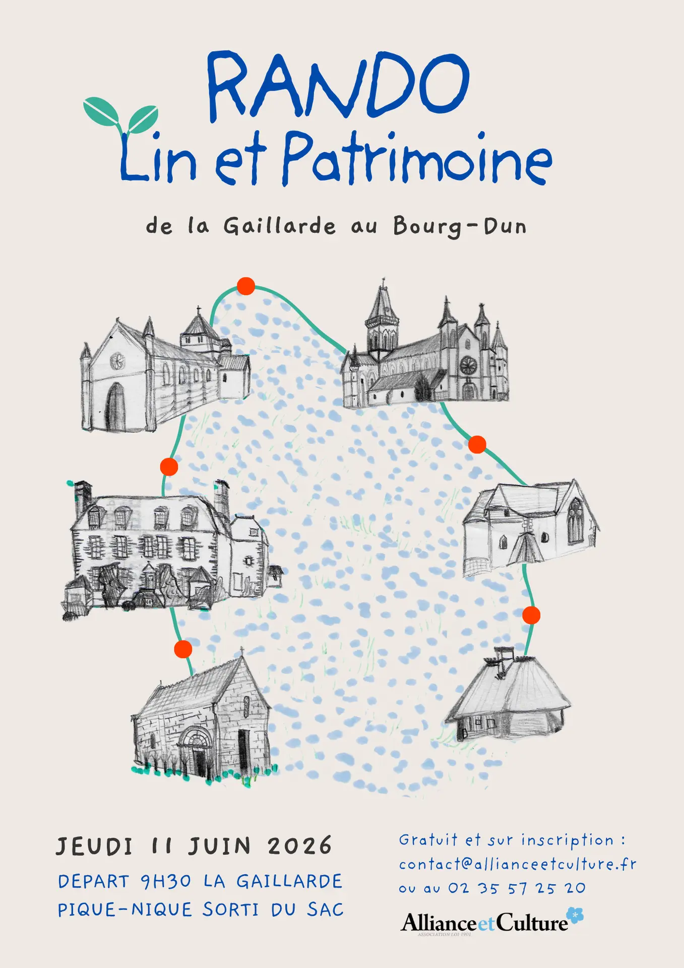 L’association Alliance et Culture vous propose une randonnée pédestre à la découverte du patrimoine bâti et de la culture du lin, entre les communes de La Gaillarde et Le Bourg-Dun.