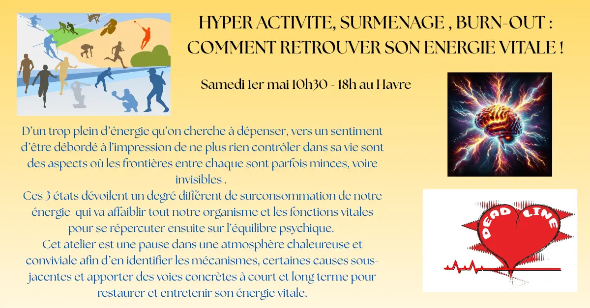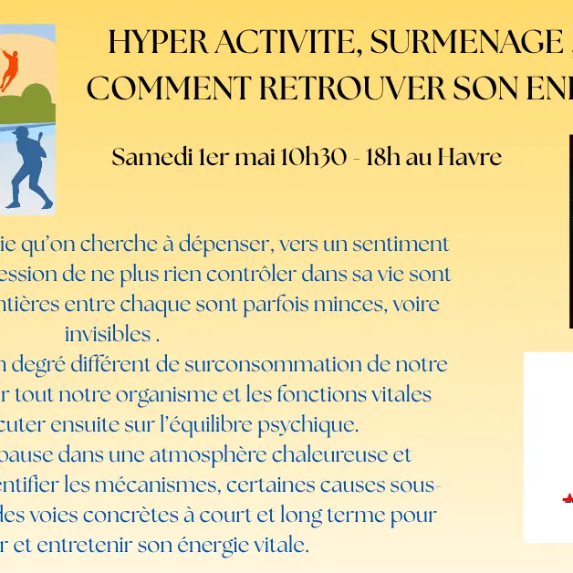 Cet atelier est une pause dans une atmosphère chaleureuse et conviviale afin d’en identifier les mécanismes, certaines causes sous-jacentes et apporter des voies concrètes à court et long terme pour restaurer et entretenir son énergie vitale. Une pratique de qigong de santé que vous pourrez refaire chez vous vous aidera à retrouver de la vitalité...