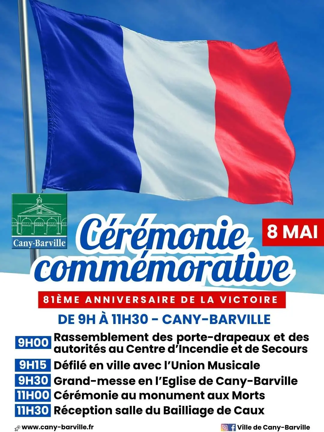 Une cérémonie commémorative marquant le 81e anniversaire de la Victoire se tiendra le 8 mai à Cany-Barville, de 9h à 11h30.
