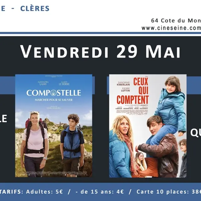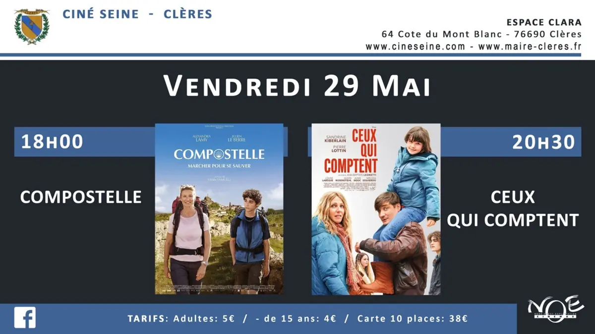 Le 29 mai avec Ciné Seine, venez assister à deux projections à l'Espace Clara de Clères. Au programme : - A 18h : Compostelle - A 20h30 : Ceux qui comptent