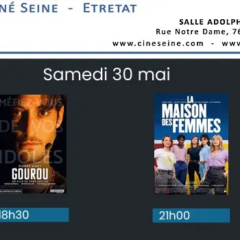 Rendez-vous à la salle Adolphe Boissaye à Etretat pour découvrir en famille : - "Gourou" (2025) - un film de Yann Gozlan - à 18h30 - "La maison des femmes" (2026) - un film de Mélisa Godet - à 21h