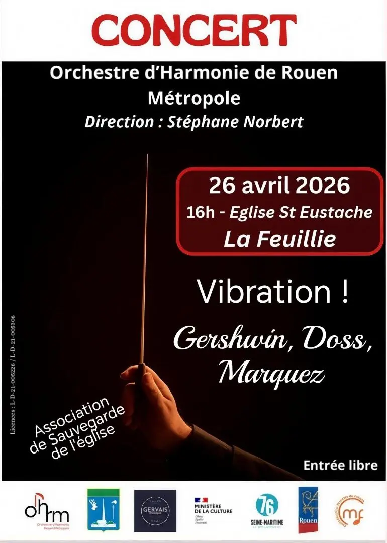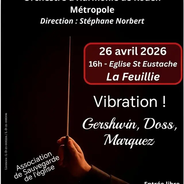 Une baguette se lève et les univers se rencontrent : un concert qui casse les codes, entre puissance et délicatesse, énergie et rêverie. L’Orchestre d’Harmonie de Rouen Métropole vous embarque dans un programme surprenant, contrasté et vivant, sans thème imposé, avec une seule promesse : vous faire vibrer du début à la fin. Rendez-vous le 26 avril 2026 à 16h, à La Feuillie, à l’Église Saint Eustache, sous la direction de Stéphane Norbert.