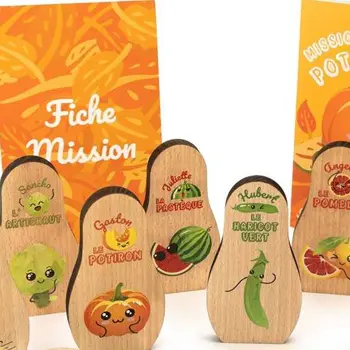 Mission potager permet la découverte des fruits et des légumes (comment ils poussent, dans quelles régions, comment les consommer…) et apporte des contenus détaillés sur l’importance de les consommer à la bonne saison (impact sur la santé, la planète, le goût, calendrier des fruits et légumes de saison…). Cette exposition est accompagnée d’un jeu de quilles en bois géant (48 cm), d’un livret et de cartes questions permettent aux petits et grands d'approfondir leurs connaissances.
