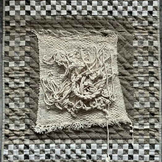 Julie Lacroix stellt das Territorium in Frage. Die Umwelt, die sie umgibt, mit der sie einen Dialog führen und sich ihr annähern möchte, um sie besser respektieren zu können. Ihre textilen Werke halten den Augenblick fest. Mithilfe von Textilien entwickelt sie ihre eigene Vorstellung von Landschaften und bietet eine poetische Vision, die die drängenden Herausforderungen, mit denen unser Planet konfrontiert ist, nicht außer Acht lässt.