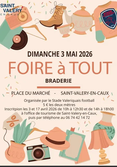 Foire à tout / Braderie sur la place de la chapelle. Toute la journée, entrée libre. Inscriptions exposants les 3 et 17 avril de 10h à 12h et 14h à 18h à l'office de tourisme