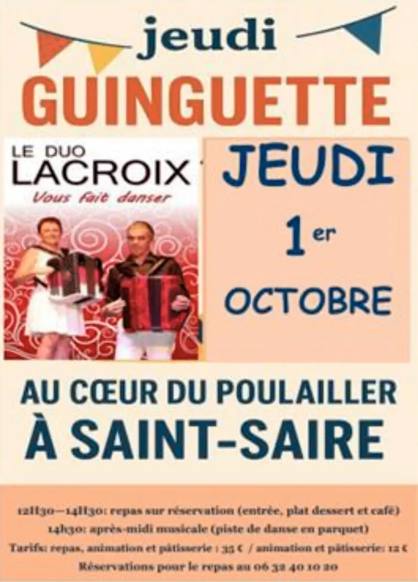 12h30-14h30 : repas sur réservation 14h30 : après-midi musicale (piste de danse en parquet)