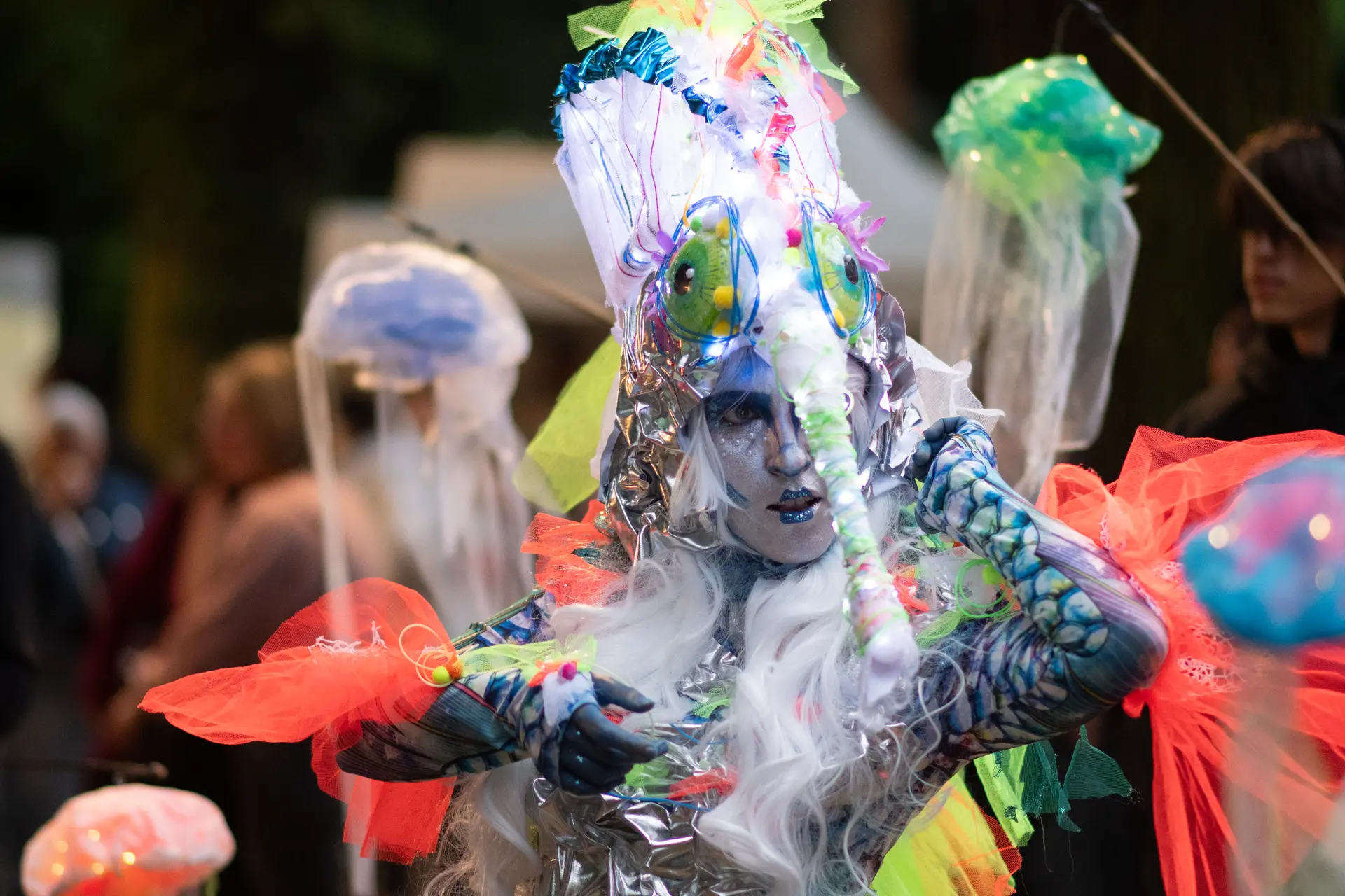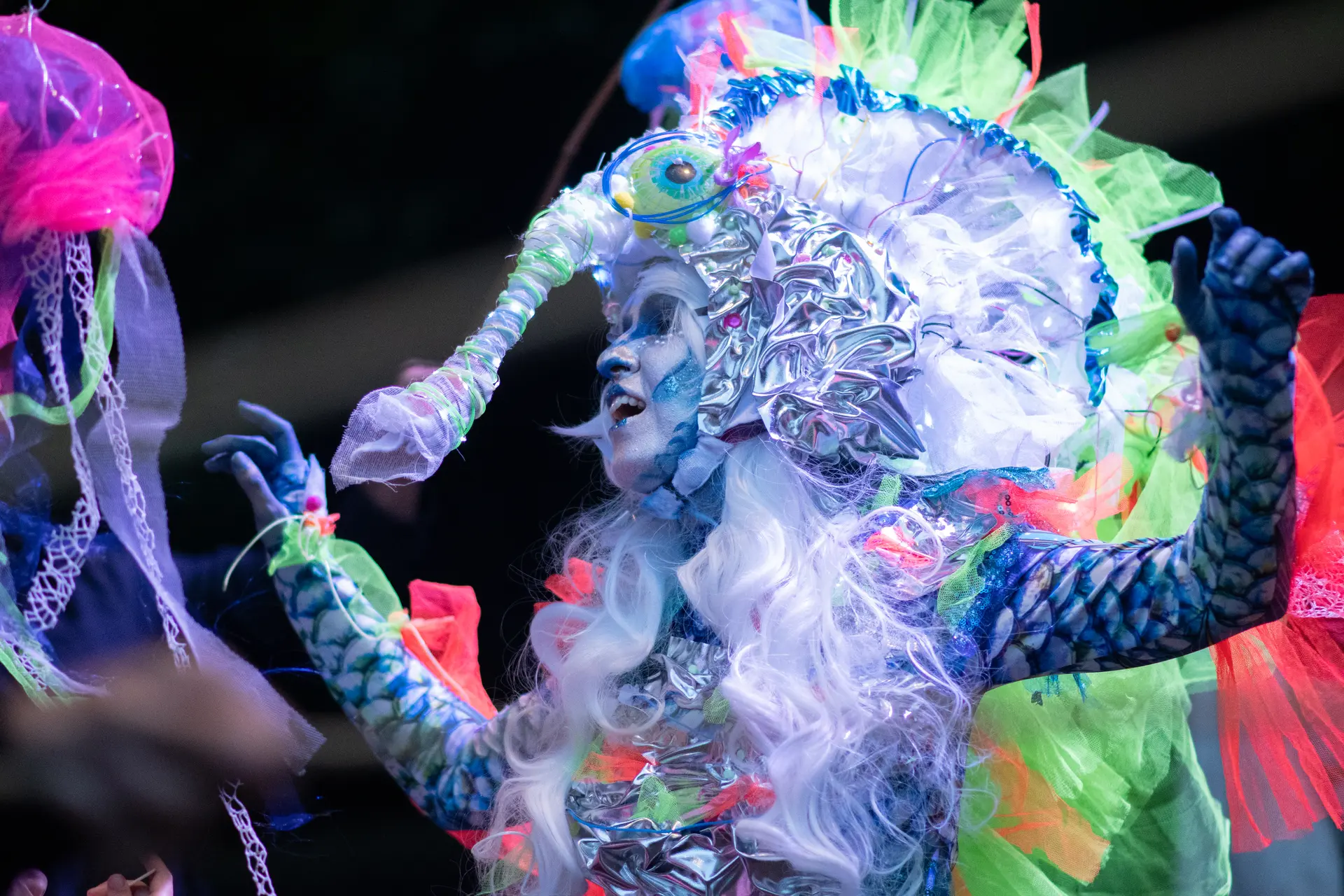 Le Voyage dans les Abysses invite petits et grands à plonger dans un monde poétique et sensoriel où les marionnettes s’animent, la lumière respire et les sons murmurent la vie sous-marine. Au théâtre romain de Lillebonne, les artistes de la Cerise sur le Mot déploient un univers immersif où la beauté fragile des fonds marins devient métaphore de nos propres profondeurs. Entre émerveillement, douceur et mystère, le public chemine parmi méduses, créatures imaginaires et chants abyssaux. Une expérience visuelle et sonore, à la croisée du théâtre de rue, de la marionnette et de la contemplation partagée qui devient métaphore de nos propres profondeurs.