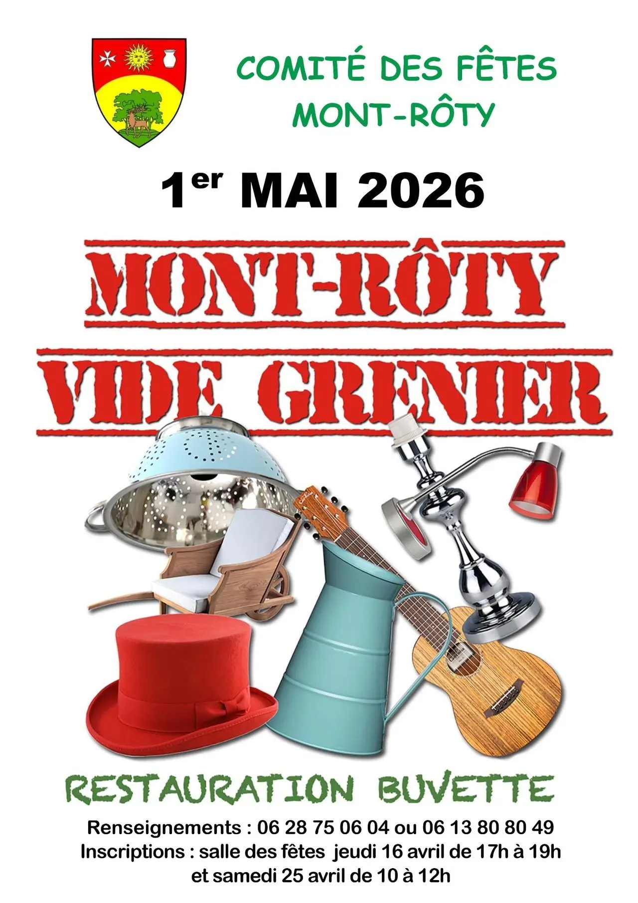 L'association des fêtes de Mont-Rôty vous attend place de l'Eglise , le 1er Mai 2026 pour sa traditionnelle Foire à tout. Restauration sur place.