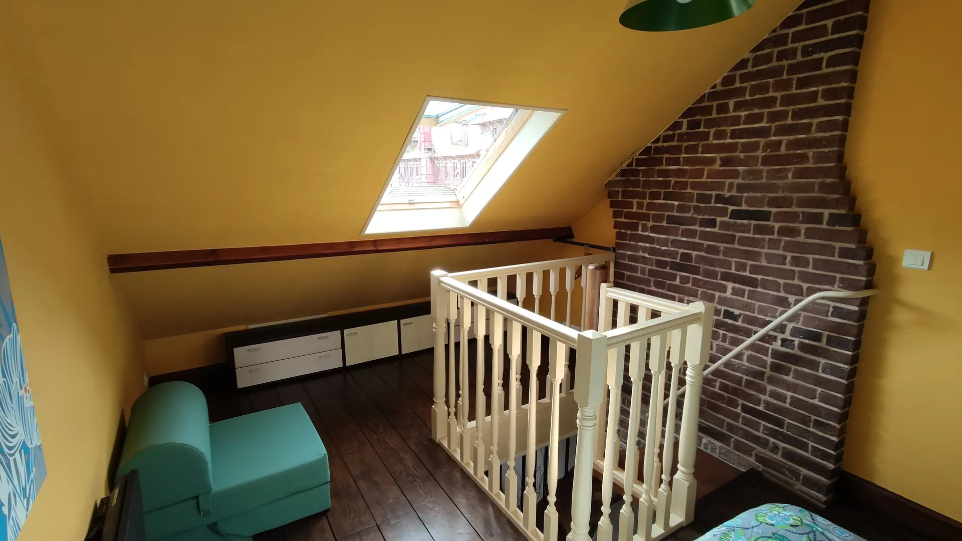 1. Stock: Schlafzimmer (12 m2) mit 1 Bett (140*190) und Badezimmer mit WC.