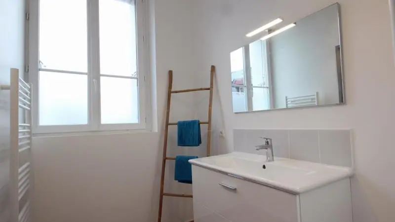 Au rez-de-chaussée : - cuisine ouverte équipée ( four, micro-ondes, cafetière Nespresso, plaques à induction, congélateur, lave-linge séchant) - séjour - salon, - wc séparé - cour extérieure privative avec terrasse, salon de jardin et barbecue. Au 1er étage : - 1 chambre 2 personnes (1 lit 160x200cm, TV écran plat) avec salle de bains privative, - 1 chambre 2 personnes (1 lit 140x200cm, TV écran plat) avec salle d'eau privative, - wc sur palier, Au 2ème étage : - 1 chambre 2 personnes (1 lit 160x200cm, TV écran plat) avec salle de bains privative, - 1 chambre 2 personnes (1 lit 160x200cm, TV écran plat) avec salle d'eau privative, - wc sur palier. Stationnement possible sur parking public à proximité. Accompagnement Golf et Sports Nautiques avec possibilité de location de matériel : prendre contact avec le propriétaire.
