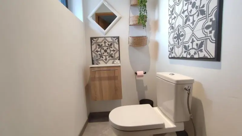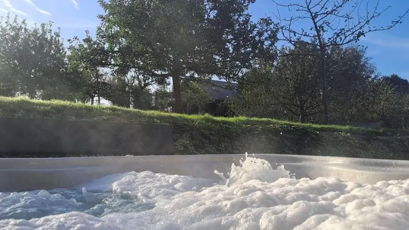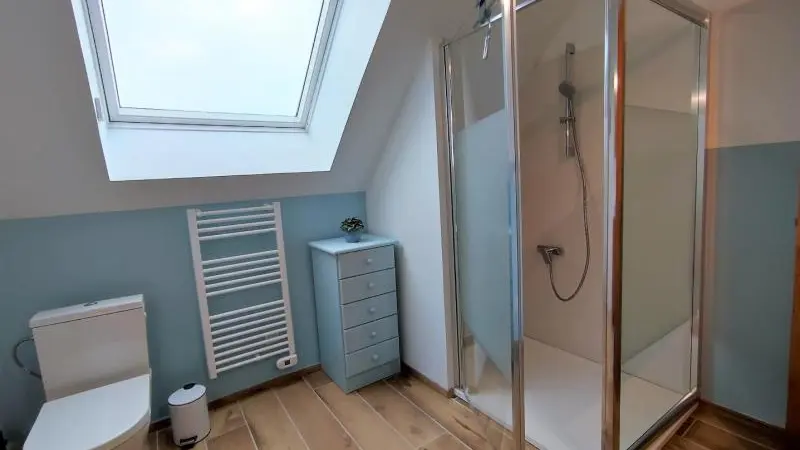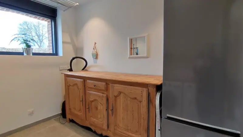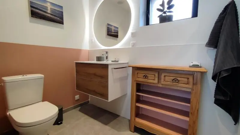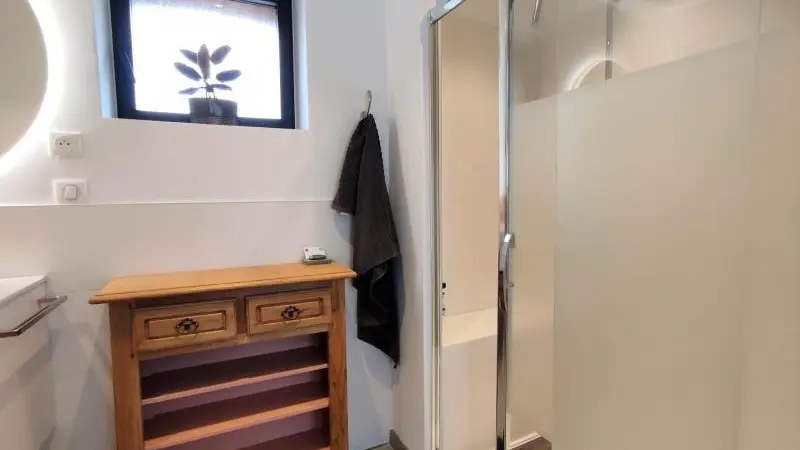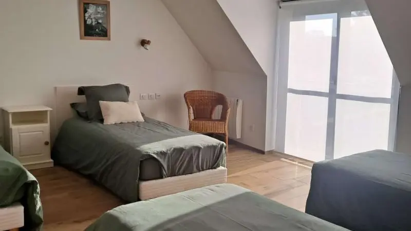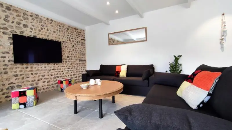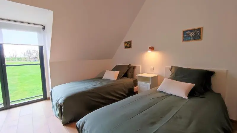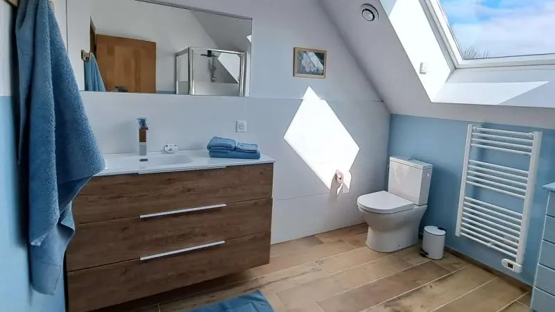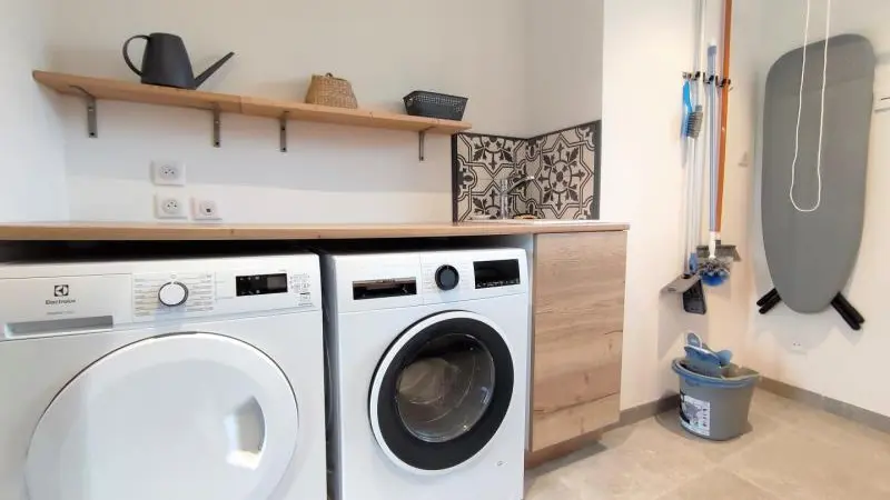 Rez-de-chaussée : - entrée, Grande pièce de vie de 60 m² avec : - cuisine en îlot central (plaque induction 4 feux aspirante, lave-vaisselle, réfrigérateur, micro-ondes, four), - espace-repas : grande table de ferme, - espace salon : « buffet à jeux », canapés confortables et TV 140cm Android, - chambre 1 lit 2 personnes lit 160x200cm ouverte sur le jacuzzi extérieur avec salle d'eau privative (douche 140x90cm, wc), - buanderie : lave-linge, sèche-linge, réfrigérateur/congélateur, étendage, - wc A l'étage : - espace de lecture et de travail (bureau, canapé, bibliothèque), - La chambre du verger : 4 lits 1 personne 90x200cm, - La chambre du jardin : 1 lit 2 personnes 160x200cm, 1 lit 1 personne 90x190cm, - La chambre des sous-bois : 1 lit 2 personnes 160x200cm, 1 lit 1 personne 90x220cm, - salle de bain vanille : baignoire et douche (90x120cm), - salle d'eau bleue : douche 90x120cm, wc, - wc Équipement bébé : lit parapluie, chaise haute, baignoire bébé, pots, chauffe-biberon.