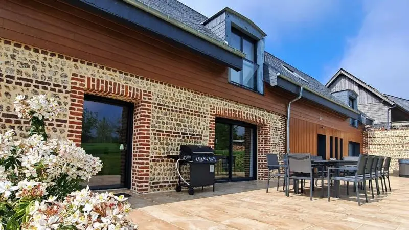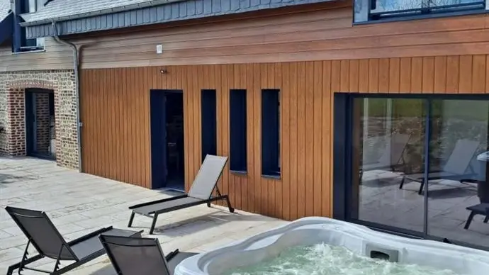A 5 km d'Etretat, le Clos Delamare vous accueille dans sa "Moussette" pour passer un week-end ou des vacances, en famille ou entre amis, à la campagne et au bord de la mer tout à la fois ! Le gîte est une grande maison lumineuse dotée d'une terrasse de 80m². C'est l'endroit idéal pour se reposer, partager des moments heureux et se ressourcer grâce à son jacuzzi en pleine nature : quel bonheur de profiter, surtout l'hiver, des bienfaits de l'eau chaude et des jets hydromassants dehors, près des pommiers ! Et depuis la maison, partez à vélo ou à pied pour de magnifiques balades qui allient mer et campagne. Pour votre confort, le linge de maison est fourni et les lits sont faits à votre arrivée. Le gîte est à proximité d'une maison d'habitation avec une entrée commune dans la propriété. 4 places de parking à côté du gîte. Prise de recharge type "Green Up" .Grande terrasse de 80m², salon de jardin, barbecue gaz, transats. Soins bien-être sur réservation