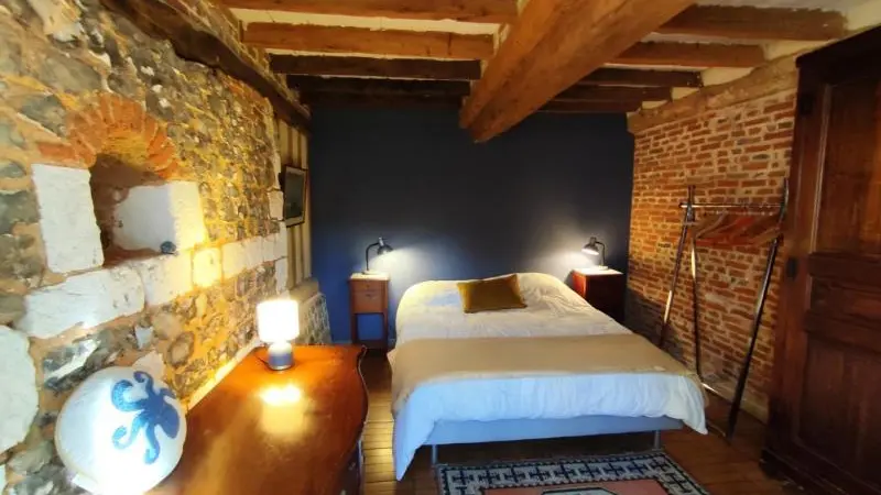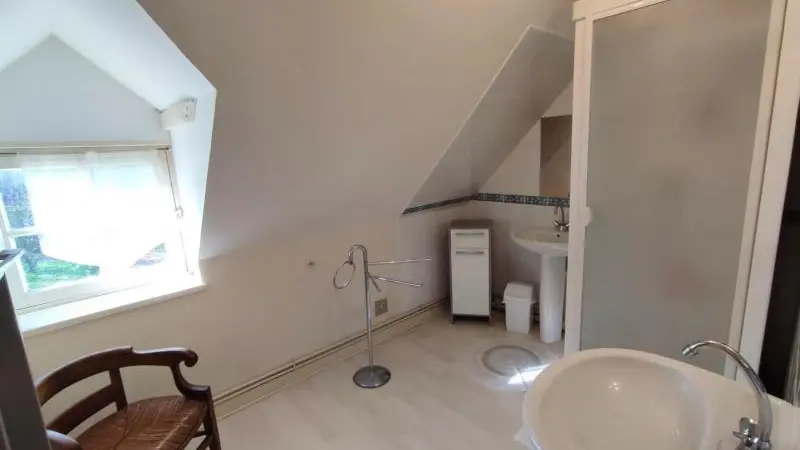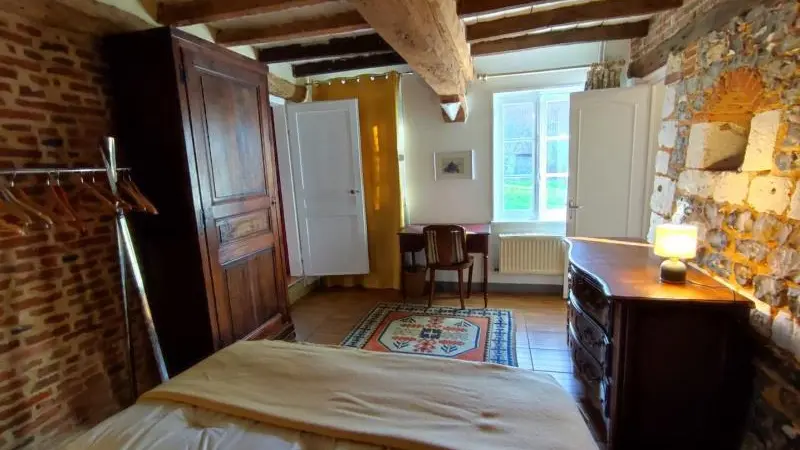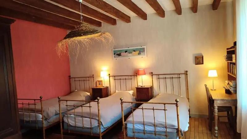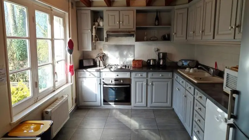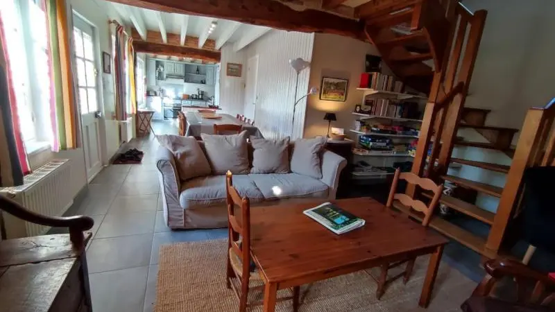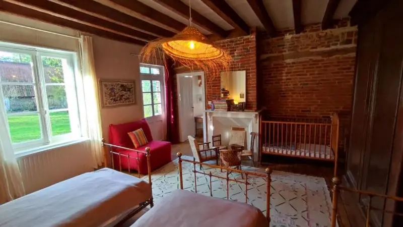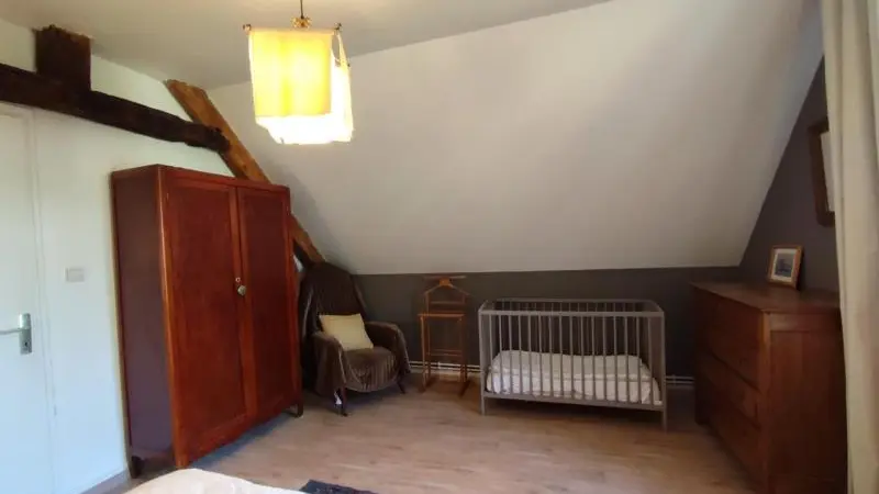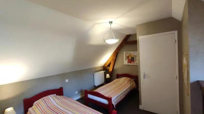 Rez-de-chaussée : - cuisine aménagée (lave-vaisselle, micro-ondes), - grand espace commun repas ( 8 pers ) - salon/séjour séjour, belle cheminée ( bois offert ) - TV, lecteur DVD, - salle de bains 2 lavabos baignoire d'angle -espace buanderie /chaufferie , 2eme frigo en réserve - wc, lave-linge, - 1 chambre (1 lit 2 personnes 160x200cm) communicante avec 1 chambre (3 lits 1 personne 80x190cm, lit bébé (60x160cm)). - porte extérieure sur le jardin dans chaque chambre A l'étage : - 1 chambre (1 lit 2 personnes 160cmx200cm, lit bébé (60x120cm), - 1 chambre (2 lits 1 personne 90x190cm), - salle d'eau, 2 lavabos , cabine douche - wc. Bibliothèque et jeux de société à disposition. A l'extérieur, très beau jardin spacieux ( 10 000 m2) et sécurisé pour les enfants ( fermé ) sous un hangar à l'abri de la pluie , jeux d'extérieur ( ping-pong, balançoires, trapèze, panier basket) buts pour foot ancien bateau recycle en jouet , transats verger ( pommiers, pruniers, poiriers) ; c